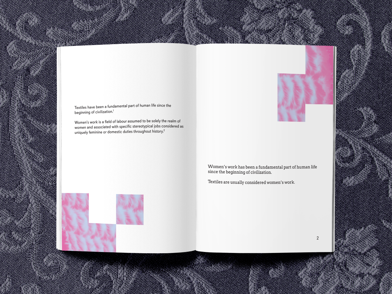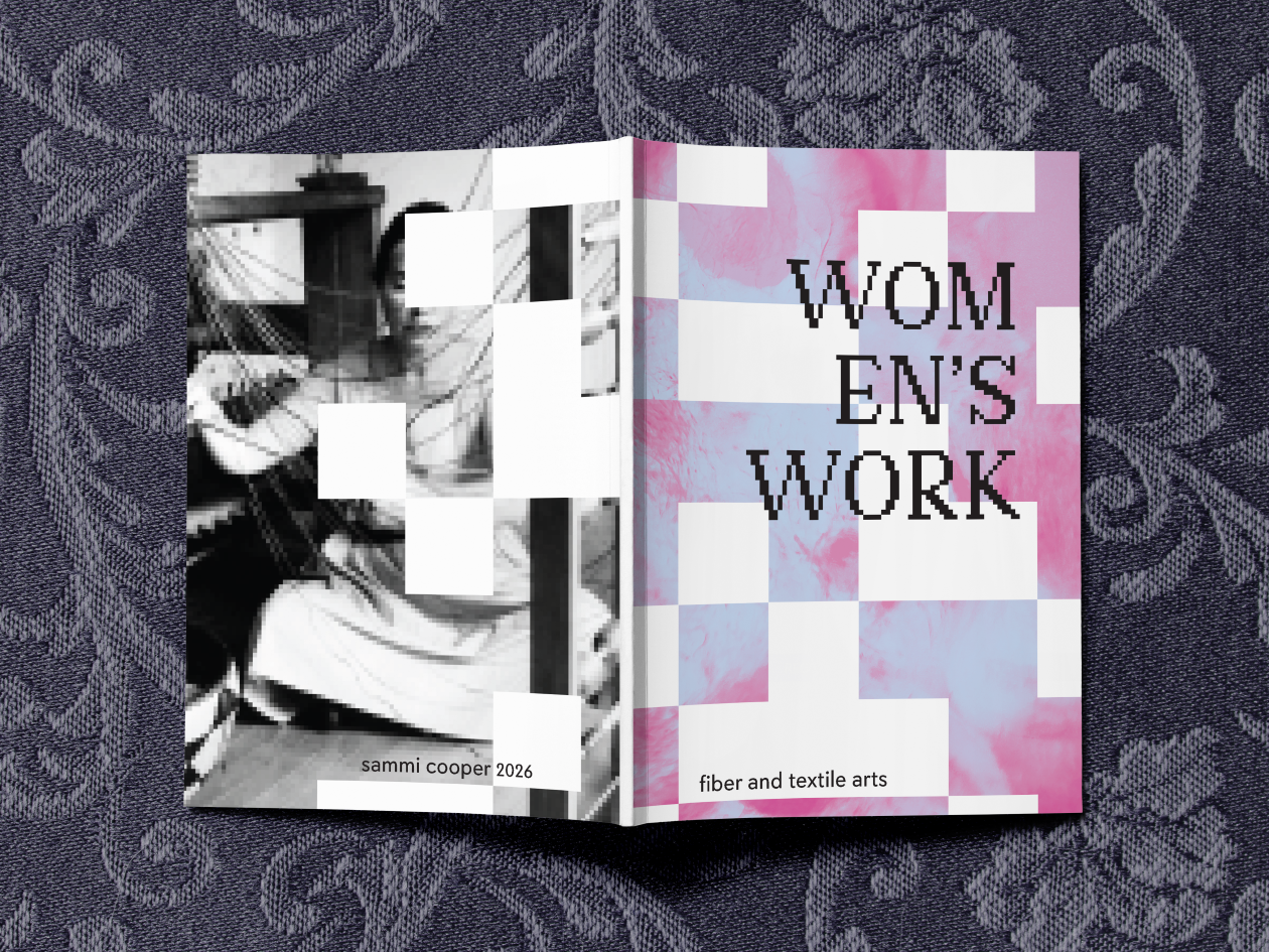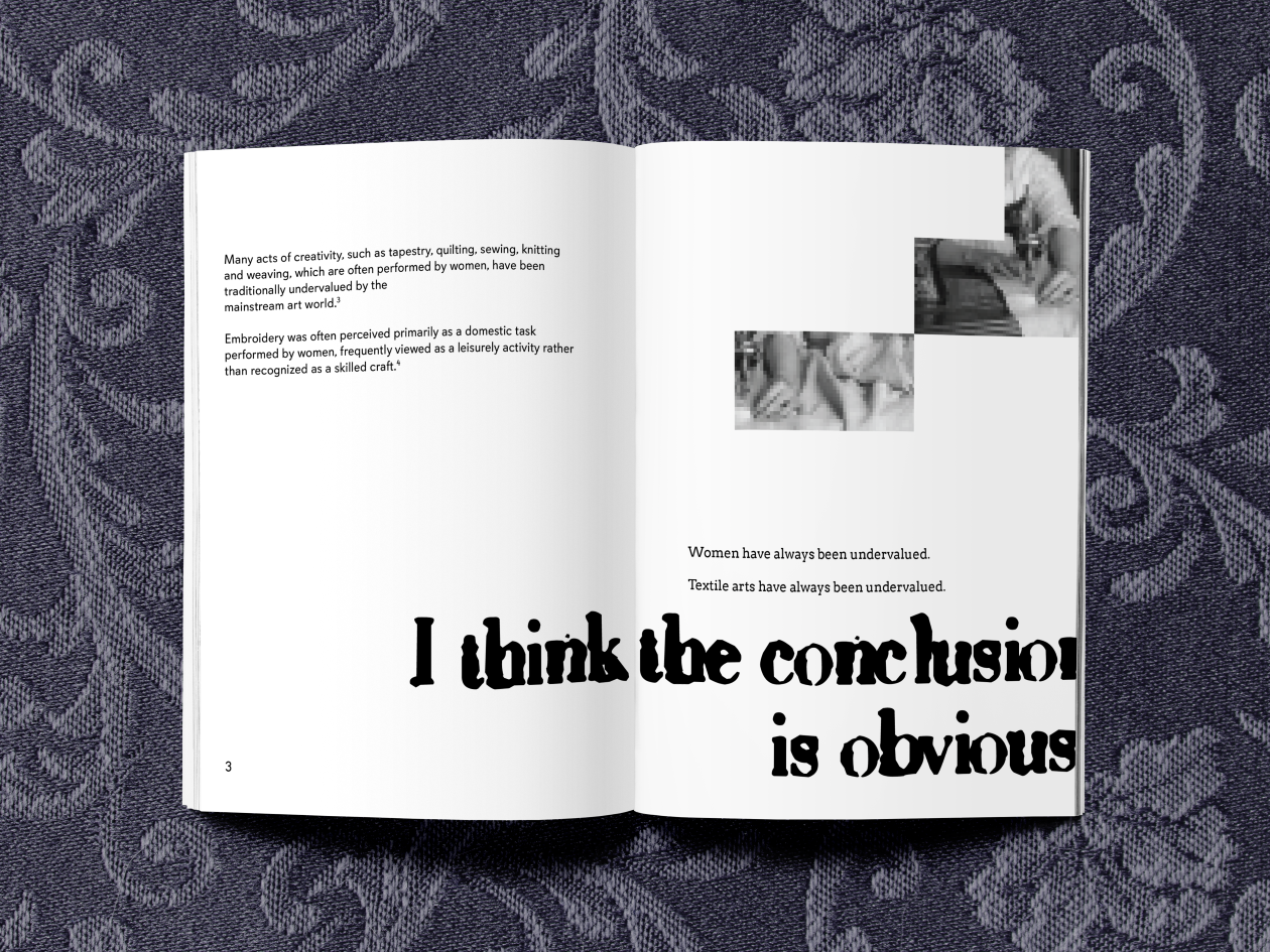 After researching and reflecting on fiber arts and their role in the wider art world I created a zine. It discusses women's role in art and how that affects the perception of the fiber arts medium.